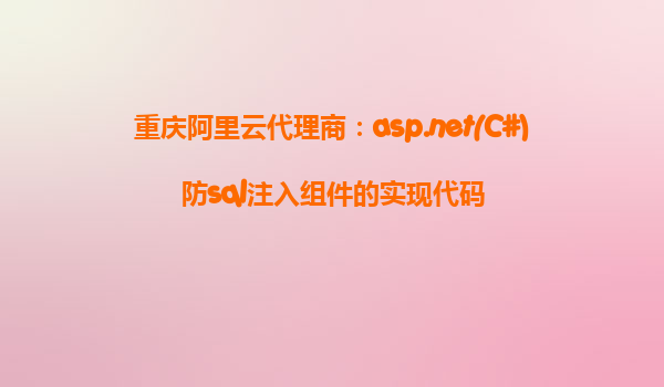 重庆阿里云代理商:asp.net(C#)防sql注入组件的实现代码 一、引言 随着信息化不断发展,互联网企业对于数据安全的重视程度日益提升。SQL注入作为最常见的一类网络攻击手段,对网站和应用系统