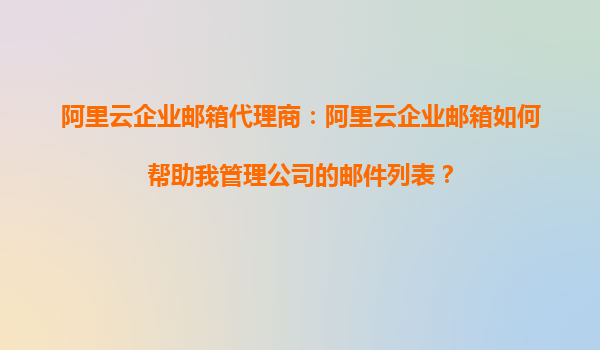 阿里云企业邮箱代理商:阿里云企业邮箱如何帮助我管理公司的邮件列表? 一、引言:企业邮件列表管理的挑战 在企业运营中,邮件列表是内部沟通和外部联络的重要工具。然而,随着企业规模扩大,邮件列表管理往往面临