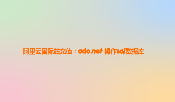 阿里云国际站充值:ADO.NET操作SQL数据库 随着云计算技术的迅猛发展,越来越多的企业和开发者选择云平台进行数据存储和管理。阿里云作为国内领先的云服务提供商,凭借其强大的基础设施、丰富的产品组合以及