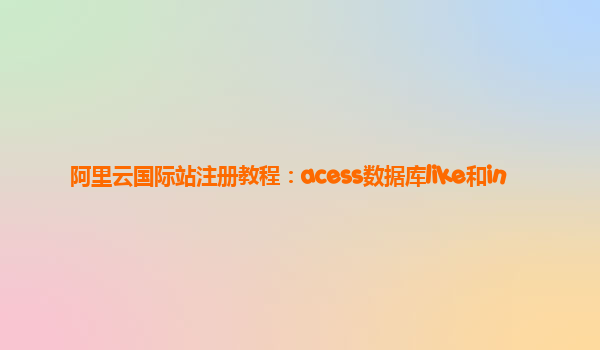阿里云国际站:如何在Acess数据库中使用LIKE和IN操作符 在进行数据库查询时,阿里云提供了一种强大且高效的解决方案来处理复杂的数据库需求。无论是通过SQL查询,还是在与阿里云提供的Acess数据库进行集成