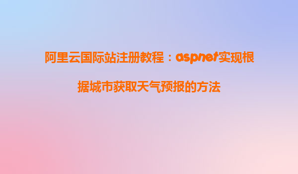 阿里云国际站注册教程:ASP.NET实现根据城市获取天气预报的方法 在当今的互联网时代,云计算已经成为企业和开发者不可或缺的一部分。阿里云作为全球领先的云计算服务商,不仅提供高性能、高可用性的云计算资源,