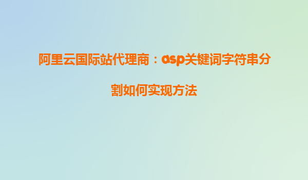 阿里云国际站代理商:ASP关键词字符串分割实现方法 在阿里云国际站的业务处理中,关键词字符串分割是一个常见的需求。尤其是在处理大量数据或优化搜索引擎时,如何高效地分割和提取关键词,直接影响到操作的效率和