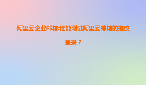 阿里云企业邮箱支持指纹识别登录吗? 在现代企业中,信息安全与高效沟通是关键要素。阿里云企业邮箱凭借其稳定性和安全性,已成为众多企业的选择。随着技术的不断进步,用户对邮箱登录方式的需求也在不断变化。本文