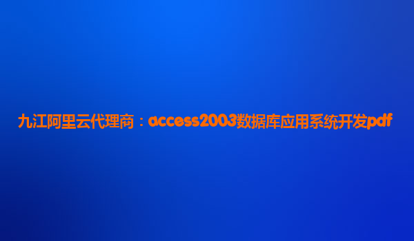 阿里云助力九江企业:基于Access2003数据库的应用系统开发 1.阿里云与Access2003数据库的结合 随着信息化的发展,越来越多的企业需要高效、安全的数据库系统来支撑业务需求。Access2003作为一种轻量级的数