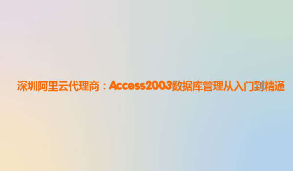 深圳阿里云代理商:Access2003数据库管理从入门到精通 在当今的信息化时代,数据库的管理和维护变得越来越重要。对于许多中小企业而言,选择一款合适的数据库管理工具以及一个稳定的云平台至关重要。作为全球领先的