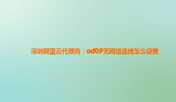 深圳阿里云代理商:ad09无网络连线怎么设置 作为深圳地区的阿里云代理商,我们经常遇到客户在使用阿里云产品时遇到网络连线问题,今天我们来分享一下关于ad09无网络连线的设置方法。 阿里云的优势 阿里