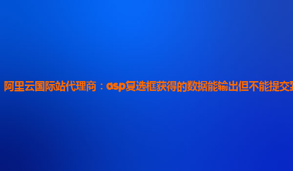 阿里云国际站代理商:ASP复选框获得的数据能输出但不能提交到数据库 随着云计算的快速发展,越来越多的企业和开发者选择将其业务和应用部署在云平台上,而阿里云作为全球领先的云服务提供商,其国际站