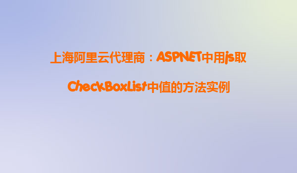 好的,下面是根据你的要求,结合上海阿里云代理商的优势和提供的技术内容,撰写的文案,包含小标题,并且以HTML格式输出。 上海阿里云代理商:ASPNET中用JS取CheckBoxList中值的方法实例 前言 随