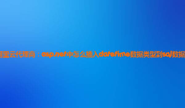 ASP.NET中插入DateTime数据类型到SQL数据库及阿里云代理商的优势 在ASP.NET开发中,插入DateTime数据类型到SQL数据库是一个常见的操作。本文将详细介绍如何在ASP.NET中进行DateTime类型数据的插入,同时结合阿