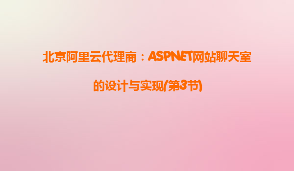 北京阿里云代理商:ASPNET网站聊天室的设计与实现(第3节) 引言 在现代互联网应用中,实时通讯和即时聊天已经成为用户互动的重要组成部分。本文将探讨如何利用阿里云服务和其代理商资源,设计并实现一个基于AS