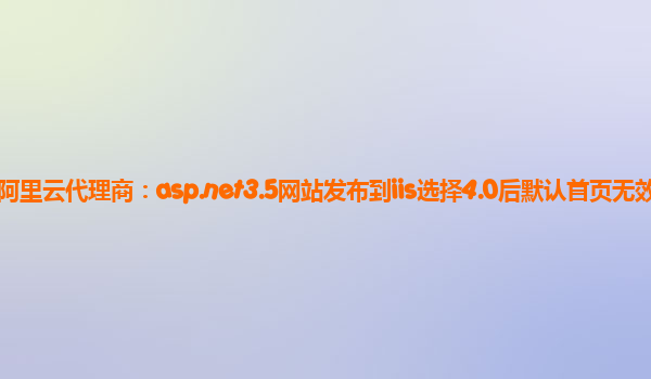 周口阿里云代理商:ASP.NET3.5网站发布到IIS选择4.0后默认首页无效 在使用ASP.NET3.5开发网站并将其发布到IIS(InternetInformationServices)时,很多开发者可能会遇到这样一个问题:在将IIS