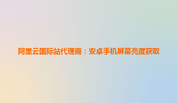 阿里云国际站代理商:安卓手机屏幕亮度获取解决方案 一、标题解析:为什么选择阿里云国际站代理商? “阿里云国际站代理商”表明该服务面向全球市场,依托阿里