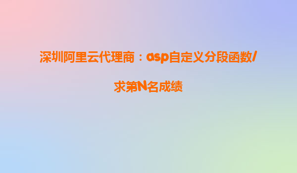 阿里云代理商与ASP自定义分段函数:求第N名成绩的应用 随着信息技术的不断发展,云计算已经成为当今企业IT架构的重要组成部分。尤其是在大数据和人工智能的推动下,云计算的优势日益突出。阿里云作为国内领
