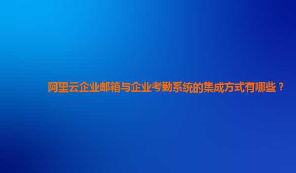 阿里云企业邮箱与企业考勤系统的集成方式 阿里云企业邮箱是一款备受企业青睐的邮箱服务,以其高效、安全和稳定的特性为企业用户提供邮件通信和管理服务。随着企业信息化的不断发展,企业邮箱与各种业务系统的集