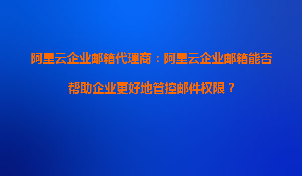 阿里云企业邮箱代理商:阿里云企业邮箱能否帮助企业更好地管控邮件权限? 一、企业邮件权限管控的重要性 在数字化办公时代,企业邮箱不仅是沟通工具,更是信息传递和存储的核心载体。邮件权限的精细化管理直