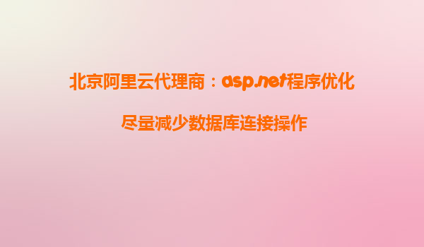 北京阿里云代理商:ASP.NET程序优化-尽量减少数据库连接操作 在使用ASP.NET进行开发时,如何更有效、高效地利用资源,是开发者们关注的一个重要问题。这其中很重要的一环就是如何减少数据库连接操作。导致性能